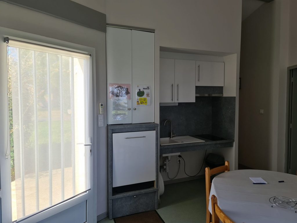 - D’un séjour avec kitchenette (frigo et plaque de cuisson)